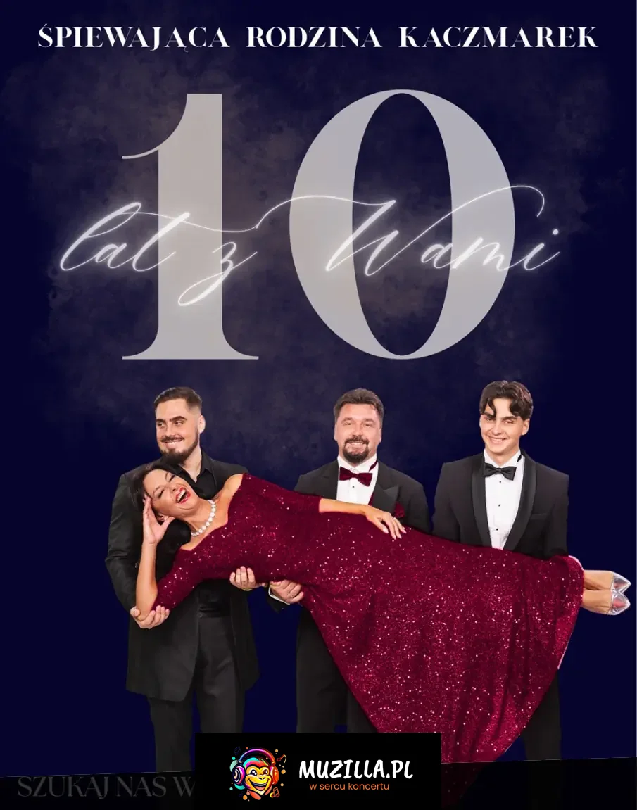 Dziesięć lat, odkąd głosy Śpiewającej Rodziny Kaczmarek połączyły się z sercami publiczności w całej Polsce. To był czas pełen melodii, które niosły radość i ukojenie, czas opowieści o miłości, nadziei i domu. Ale teraz - przed nami nowy rozdział. Wraz z początkiem Nowego Roku ruszamy w trasę koncertową, która będzie podróżą przez to, co w muzyce najpiękniejsze. Nowa trasa to nowe wyzwania, nowe aranżacje i świeże emocje - ale ten sam rytm serca, rodzinny i prawdziwy. Podczas koncertów zabrzmią nasze ulubione klasyki, które od lat poruszają pokolenia -- utwory muzyki klasycznej, operetki i muzyki filmowej, ale też pełne blasku piosenki, które od zawsze łączą ludzi. Nie zabraknie wzruszeń, wspólnego śpiewania i momentów, w których czas jakby się zatrzymuje. Każdy koncert to spotkanie -- z muzyką, z emocją, z drugim człowiekiem. Przyjdźcie, by znów być razem - by usłyszeć te dźwięki, które płyną prosto z serca. Bo choć minęło dziesięć lat, to dopiero początek następnej melodii...