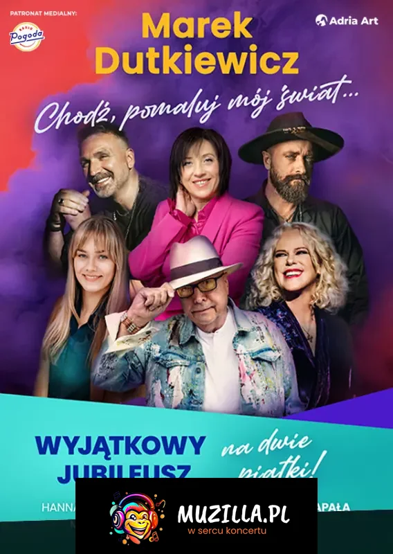 Chodź, pomaluj mój świat - wyjątkowy jubileusz Marka Dutkiewicza, autora superprzebojów. Niezwykły koncert, który będzie podróżą przez świat najpiękniejszych polskich piosenek! Z okazji 55-lecia utworu "Chodź, pomaluj mój świat" świętujemy twórczość Marka Dutkiewicza - jednego z najbardziej kultowych autorów tekstów w historii muzyki rozrywkowej. Jolka, Jolka i inne, największe przeboje na żywo. Usłyszycie na żywo takie przeboje jak: "Jolka, Jolka", "Dmuchawce, latawce, wiatr", "Słodkiego, miłego życia", "Aleja gwiazd", "Szklana pogoda", "Windą do nieba" i wiele, wiele innych, które na zawsze zapisały się w sercach Polaków.