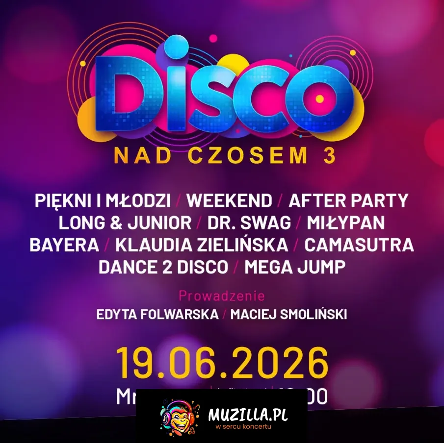 Taneczne rozpoczęcie lata w Mrągowie! Trzecia edycja Disco nad Czosem nadchodzi w nowej, bogatszej odsłonie! Na scenie słynnego mrągowskiego amfiteatru zobaczycie takich artystów jak: Piękni i Młodzi, Weekend, After Party, Long & Junior, Dr. Swag, MiłyPan, Klaudia Zielińska, Bayera, Camasutra, Dance 2 Disco, Mega Jump.