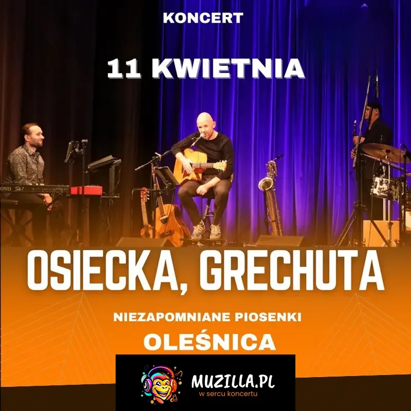 Zapraszamy na koncert poświęcony twórczości Agnieszki Osieckiej oraz Marka Grechuty. W programie znajdą się najwybitniejsze, najbardziej znane piosenki napisane przez Agnieszkę Osiecką: m.in. "Piosenka o okularnikach", "Niech żyje bal", "Kołysanka dla okruszka", "Kiedy mnie już nie będzie", "Co każdy chłopiec wiedzieć powinien oraz wybitne utwory wykonywane przez Marka Grechutę: "W dzikie wino zaplątani", "Niepewność", "Historia jednej podróży", "Korowód", "Świat w obłokach", "Dni których nie znamy" oraz wiele innych.