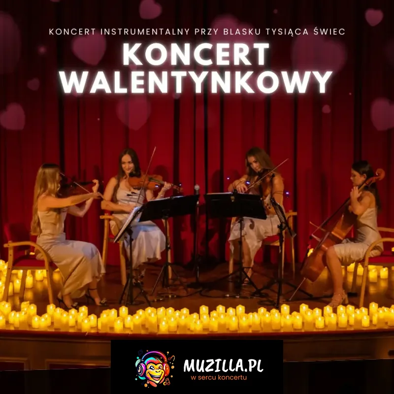 Candle Live Music zaprasza niezwykły wieczór pełen romantyzmu i magii, stworzony z myślą o celebrowaniu miłości w jej najpiękniejszym wydaniu. W blasku setek świec zabrzmią ponadczasowe miłosne utwory w wyjątkowych, instrumentalnych aranżacjach, które poruszą serca i stworzą intymną, nastrojową atmosferę. To idealna okazja, by wspólnie świętować Dzień Zakochanych - zanurzyć się w muzyce pełnej emocji, wzruszeń i ciepła, która od lat towarzyszy najpiękniejszym historiom miłosnym. Subtelne brzmienia i elegancka oprawa sprawią, że ten wieczór stanie się niezapomnianym przeżyciem. W programie koncertu znajdą się m.in.: "All You Need Is Love", poruszające "I Will Always Love You", nastrojowe "Kiss from a Rose", legendarne "My Heart Will Go On", romantyczne "Can't Take My Eyes Off You", wzruszające "Shallow" oraz pełne pasji "Bésame Mucho". Pozwól się oczarować muzyce i wyjątkowej atmosferze, w której każdy dźwięk opowiada historię miłości. To wieczór pełen emocji, bliskości i piękna - wydarzenie, które na długo pozostanie w pamięci. Nietuzinkowe wnętrze, tysiąc świec i nastrojowe brzmienia wprawią Cię we wspaniały nastrój i dostarczą świetnej rozrywki.