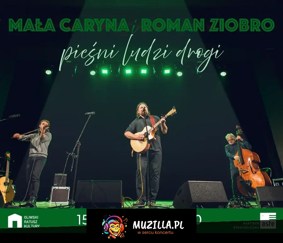 Oliwski Ratusz Kultury zaprasza na koncert Mała Caryna i Roman Ziobro - Pieśni ludzi drogi. W programie znajdziemy "pieśni ludzi drogi", piosenki autorskie, tłumaczenia kabaretowe oraz aranżacje najpiękniejszych, starannie wyselekcjonowanych polskich i zagranicznych utworów muzycznych. Niezwykły kontakt z publicznością oraz umiejętności muzyków sprawiają, że koncerty Małej Caryny na długo zapadają w pamięć.