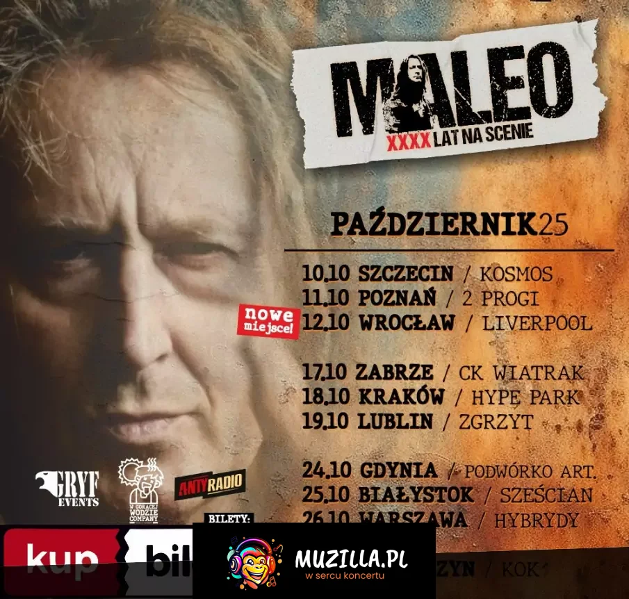 Zapraszamy na trasę wiosenną koncertową - kontynuację trasy jesiennej MALEO XXXX! Jest to nasza ostatnia trasa z tym projektem i zarazem powrót MALEO do Bielska-Białej po wielu latach! Przygotowaliśmy dla Was specjalny bilet kolekcjonerski!