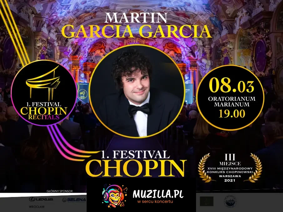 MARTIN GARCIA GARCIA - laureat III miejsca i nagrody za najlepsze wykonanie koncertu na XVIII Międzynarodowym Konkursie Pianistycznym im. Fryderyka Chopina w Warszawie oraz zwycięzca i zdobywca nagrody publiczności na Międzynarodowym Konkursie Pianistycznym w Cleveland.