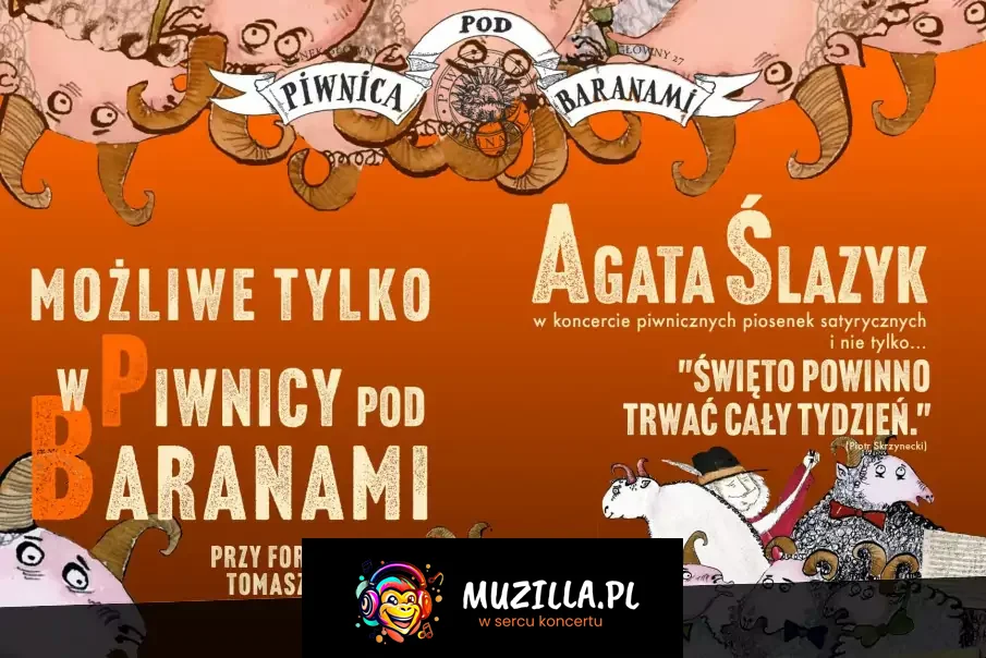 Piotr Skrzynecki (legendarny i niekwestionowany lider, konferansjer, artystyczny guru Piwnicy pod Baranami), uwielbiał świętowanie. Zwyczaj organizowania benefisów i jubileuszy artystów i osobistości życia publicznego Piwnica pielęgnuje do dzisiaj. Temat ŚWIĘTOWANIA zainspirował piwniczną artystkę Agatę Ślazyk do wybrania i połączenia w jednym programie: pieśni niepoważnych, piosenek satyrycznych, piosenek dowcipnych, żartów słowno-muzycznych, których wiele zebrało się w jej repertuarze przez lata obecności w Piwnicy pod Baranami. Usłyszymy teksty m.in.: Wiesława Dymnego, Jeremiego Przybory, Agnieszki Osieckiej, Juliana Tuwima, Mariana Załuckiego, Antoniego Marianowicza, Andrzeja Waligórskiego oraz, nie zawsze poważnego barda, bajkopisarza, satyryka, współtwórcę kabaretów "Adios muchachos" i "Żegnajcie chłopcy", Bonifacego Dymarczyka. Wybrzmi też tekst samej Agaty, bo przecież jej pierwsza autorska płyta udowodniła, że słowem włada całkiem swobodnie. Za sprawą Artystki usłyszymy również pierwszą w historii pieśń do słów Piotra Skrzyneckiego. Zaznajomieni z repertuarem Artystki słuchacze znajdą tutaj na pewno pozycje znane z anten stacji radiowych, oraz te, którymi po recitalach bisowała na życzenie publiczności. Będzie też wiele premierowych wykonań. Wśród satyry i śmiechu znajdzie się też, niejako dla równowagi, kilka lirycznych pereł. Agata przybliży historię powstania wielu utworów oraz zabawne zdarzenia z nimi związane. Całość prowadzi znany z koncertu "Gdzieś na ulicy nienazwanej - Pieśni Piwnicy pod Baranami" piwniczny kompozytor Tomasz Kmiecik.