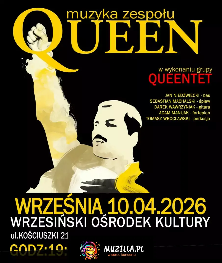 10 kwietnia 2026 roku we Wrzesińskim Ośrodku Kultury w wystąpi grupa QUEENTET, która zaprezentuje program wypełniony nieśmiertelnymi utworami zespołu QUEEN. Skład 5-osobowej grupy Queentet tworzą muzycy, który od 15 lat lat wykonują piosenki Queen z towarzyszeniem orkiestry symfonicznej. To gwarancja rozrywki na najwyższym poziomie przy kompozycjach, które na stałe weszły do kanonu rocka.