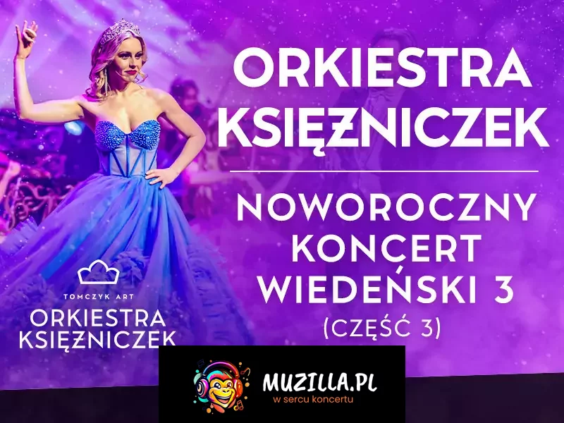 Noworoczny Koncert Wiedeński 3 (część 3.) Orkiestry Księżniczek to połączenie wiedeńskiej formy i kunsztu z młodością, wdziękiem, werwą i niespotykaną muzykalnością artystów wykonujących to widowisko. Zabrzmią największe, ponadczasowe i wiecznie bliskie sercom Melomanów przeboje króla walca - Johanna Straussa. Nie zabraknie także popisowych arii z "Księżniczki Czardasza", "Zemsty Nietoperza", "Barona Cygańskiego", "Wesołej Wdówki", "Krainy Uśmiechu" oraz takich dzieł literatury muzycznej jak: "Nessun dorma" Pucciniego, "Walc Łyżwiarzy" Emile Waldteufel'a, "I will follow him" z musicalu Zakonnica w Przebraniu czy nieśmiertelne "Time to say goodbye". Nie zabranie także wielu muzycznych niespodzianek oraz spektakularnego show, do którego na przestrzeni lat przyzwyczaiła melomanów z całego świata pierwsza na świecie Orkiestra Księżniczek!