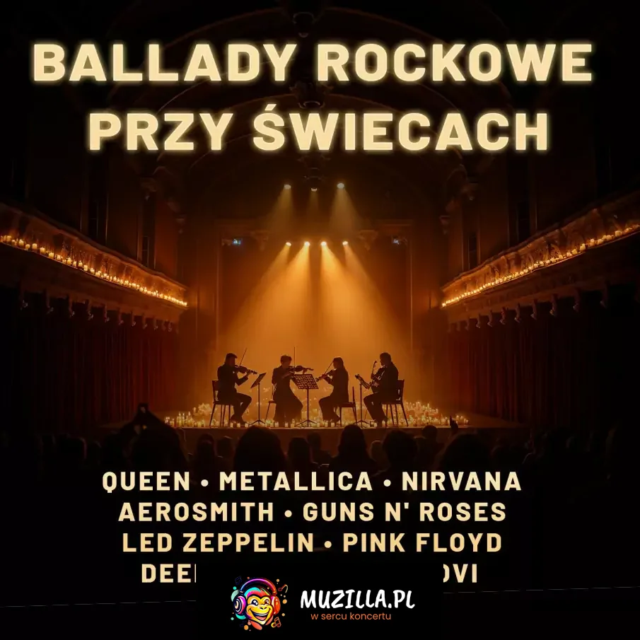 Poczuj magię największych rockowych hymnów podczas wyjątkowego wieczoru, w którym legendarne melodie ożywają w wykonaniu kwartetu smyczkowego, otulone blaskiem setek świec.