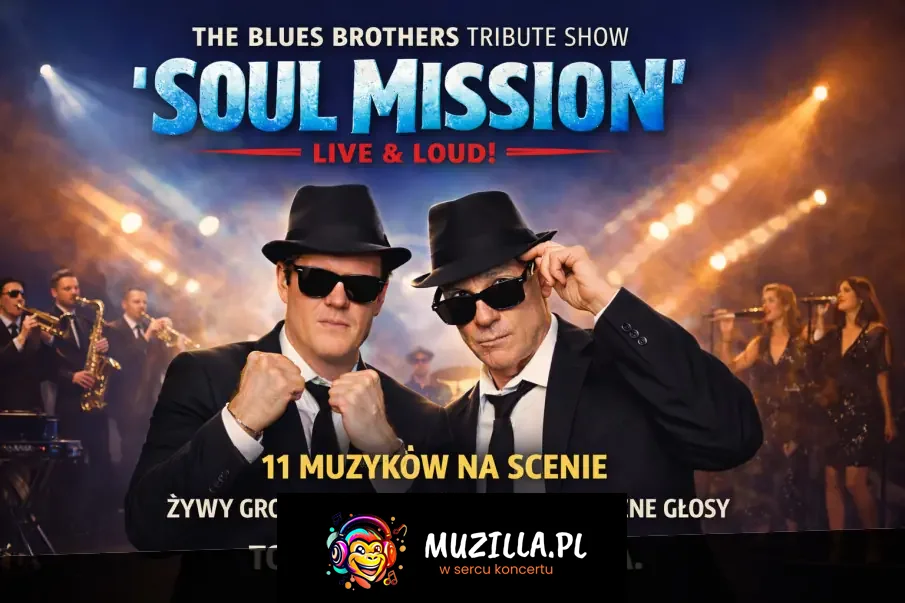 To nie jest powrót do przeszłości. To energia, która znów wychodzi na scenę. Dekady po premierze kultowego filmu The Blues Brothers idea bluesowej misji wybrzmiewa na nowo - nie jako rekonstrukcja ani kostium, lecz jako żywe, pulsujące widowisko koncertowe. The Blues Brothers Tribute Show "Soul Mission" to coś więcej niż koncert. To spotkanie rytmu, głosu i scenicznej intensywności. Na scenie pojawia się 11 muzyków - rozbudowana sekcja dęta, mocna sekcja rytmiczna, dwa wyraziste wokale i soulowe chórki - tworząc brzmienie grane w pełni na żywo, z rozmachem i bez kompromisów.