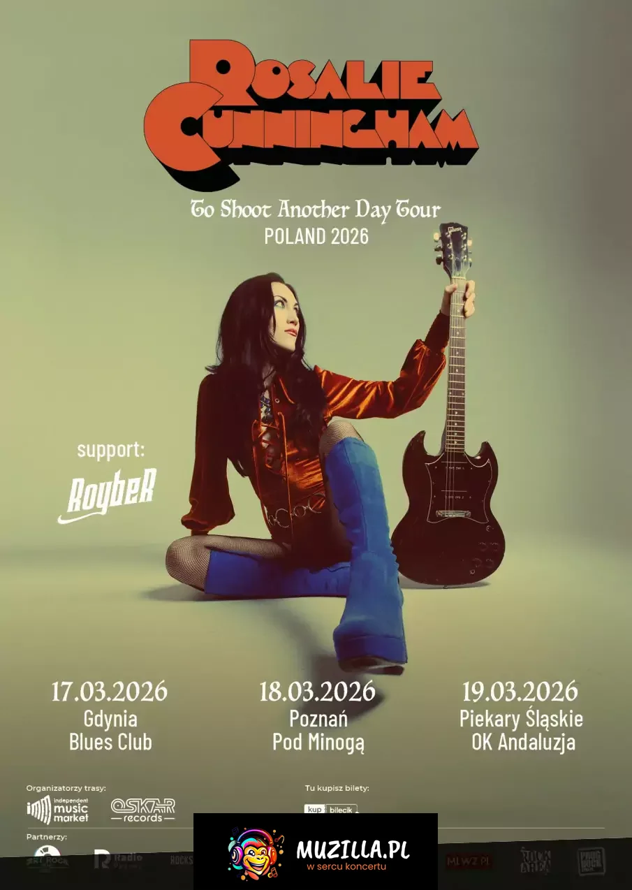 - jedna z najbardziej charyzmatycznych i oryginalnych postaci współczesnej sceny rockowej - tej wiosny w Polsce! Po świetnie przyjętych albumach Rosalie Cunningham, Two Piece Puzzle i najnowszym To Shoot Another Day, a także trasach koncertowych po całej Europie, artystka wraz ze swoim zespołem rusza w kolejną podróż, by oczarować publiczność swoim wyjątkowym brzmieniem i sceniczną energią.Trasa To Shoot Another Day Tour to trzy wyjątkowe koncerty w Polsce, podczas których usłyszymy utwory z nowego albumu, a także wcześniejsze klasyki, które ugruntowały jej pozycję wśród najbardziej cenionych twórczyń rocka progresywnego i psychodelicznego.