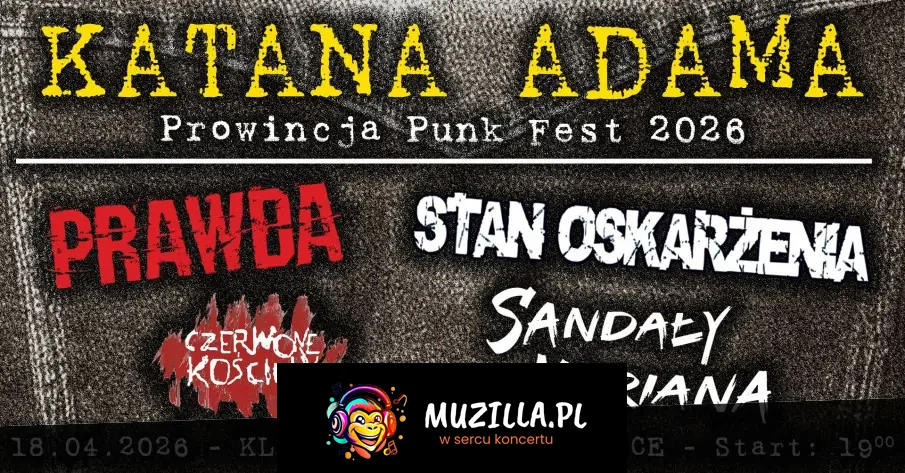 Nadchodzi wielkimi krokami Katana Adama Prowincja Punk Fest 2026! Tak jak zapowiadaliśmy, co roku będziemy koncertem upamiętniać pamięć naszego przyjaciela i stałego bywalca koncertów, który (zdecydowanie za wcześnie) nas opuścił… lecz pamięć o nim i jego charakterystycznej katanie, pełnej naszywek ulubionych zespołów, pozostanie z nami na zawsze! W tym roku widzimy się 18 kwietnia o godz. 19:00 Prowincjonalną scenę rozgrzeje mocne punkowe granie! Podczas Katana Adama Prowincja Punk Fest 2026 zagrają: