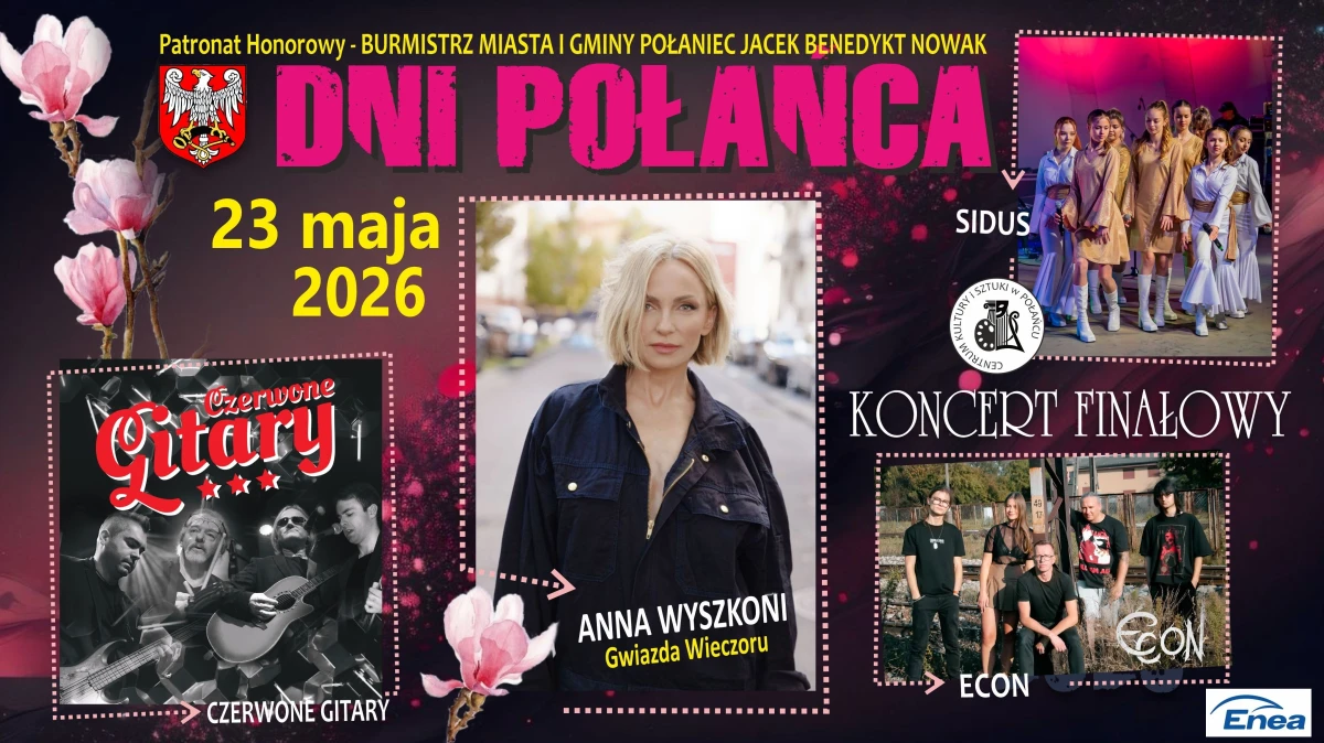 Dni Połańca 2026 odbędą się 23 maja 2026 roku, a organizatorzy potwierdzili już skład Koncertu Finałowego. Na scenie mają pojawić się Anna Wyszkoni, Czerwone Gitary, ECON oraz SIDUS. W materiałach promocyjnych Anna Wyszkoni została wskazana jako gwiazda wieczoru.
