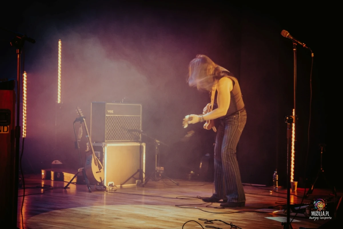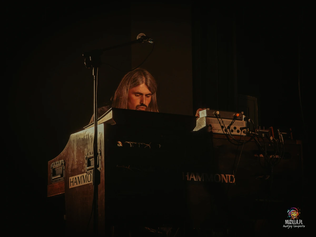 Szczególnie imponujące były momenty improwizacji – wtedy scena zamieniała się w przestrzeń dialogu. Gitara i organy Hammonda prowadziły między sobą muzyczne rozmowy, raz rywalizując, raz dopełniając się w pięknej harmonii. W pewnych fragmentach bas przejmował inicjatywę, odpowiadając krótkimi frazami – niczym rozmowa trzech przyjaciół, którzy doskonale się rozumieją bez słów.